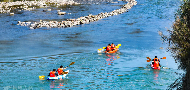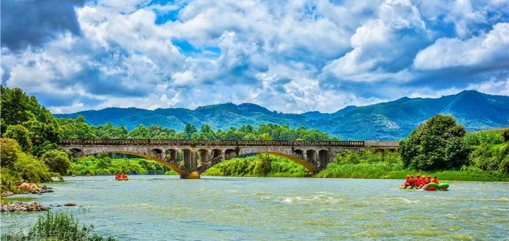 龙川江漂流起漂点曲石蔺家湾,止漂点曲石永济桥,全长约5.20公里,意为“珍爱之漂”。沿途有文化遗迹月老潭、河湾温泉、藕断丝连、山水清音、千年恩爱(情人林)、泥牛漂江、金牛峡、话云听泉、悟道石禅、春风桥、雪月流烟、鱼王洞府、泥崖水帘、岸芷汀兰、普济塘、永济桥十六个民间故事和自然景观。