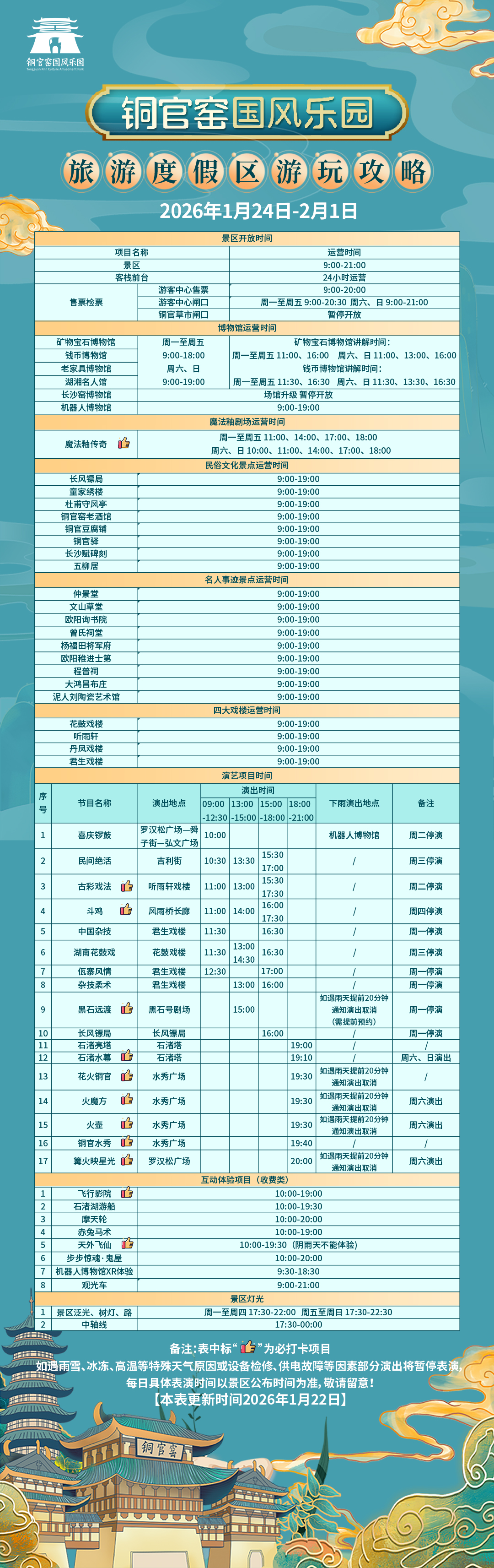 铜官窑国风乐园位于长沙市望城区铜官街道铜官窑路,景区内拥有17处人文景点、8大博物馆、4大戏楼、4大科技娱乐体验项目,小镇以唐风建筑为主,将再现千年前的大唐长沙景象。