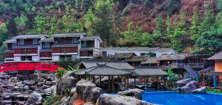理石门关温泉位于大理苍山石门关景区内依山傍河,