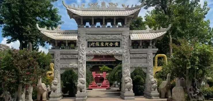 享受世外桃源的乐趣。黄金河度假村位于蓬莱与烟台开发区交接处,距烟台开发区18公里,坐落于蓬莱市大柳行镇,建立于2009年4月,于2010年8月初期工程竣工。总面积超过500亩,套房18间,别墅18幢。采用自种自摘的有机绿色蔬菜瓜果、数十种山间野味作为食材,烹饪一流特色鲁味美食,可容纳1000人同时就餐。度假村内满目葱茏,碧水环绕,空气清新,一年四季花期不断,拥有珍稀野生动物40余种,更有特色民俗文化戏曲山东琴书——吕剧特设剧场可供表演娱乐。黄金河度假村是集住宿、特色饮食、度假、旅游休闲、综合会议及山东特色文化综合性一站式度假场所。