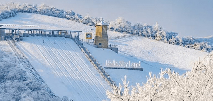 云上草原滑雪场是南方规模较大的户外滑雪场地之一,素有“江浙沪的专业雪场”的美誉。雪场面积达30万平方米,雪道总长3.8公里,拥有初、中、高8条雪道,无论是滑雪新手还是资深高手,都能在这里找到适合自己的雪道,尽情享受滑雪的乐趣。其中,高级雪道长达1000米,坡度在25-30度之间,垂直落差达102米,为滑雪高手们提供了挑战自我、突破极限的广阔空间。