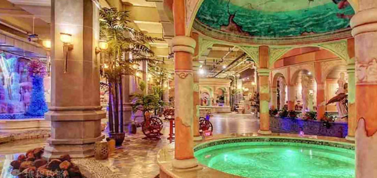 山东蓬莱欧乐堡亲子养生温泉,以古罗马建筑风格为主题,搭配天然泉水,欣赏特色景观的同时可滋养身心。拥有多种温泉汤池、溶洞池、汗蒸房、休息区等。