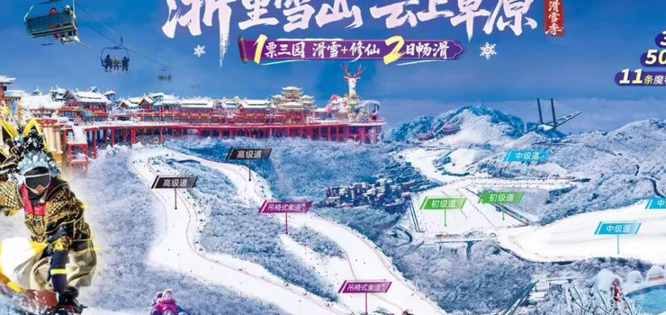 云上草原滑雪场在安吉云上草原景区核心区域赤豆洋雪岭峰,滑雪场面积30万平方米,滑雪接待中心及雪具大厅、餐厅、VIP服务等配套齐全,滑雪场有2条初级道、4条中级道和2条高级道,能满足不同滑雪爱好者的需求,并配备专业的滑雪教练和管理团队,有专业的安全管理团队为滑雪游客的安全提供保障,云上草原滑雪场所有造雪、压雪设备、滑雪的雪具都是采用世界品牌,能让游客有非凡的滑雪体验。