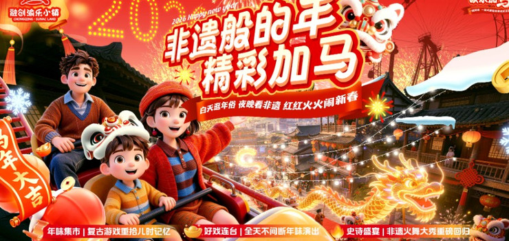 重庆融创渝乐小镇一期总建筑面积6.9万㎡,拥有4大主题区,共计20+项游乐设备,其中不乏U型过山车“传奇双龙”、8K LED球幕飞行影院“飞越重庆”等游乐设备,是集游乐设备、科技体验、特色餐饮、主题商店、精彩演艺于一体的开放式的高品质娱乐小镇。