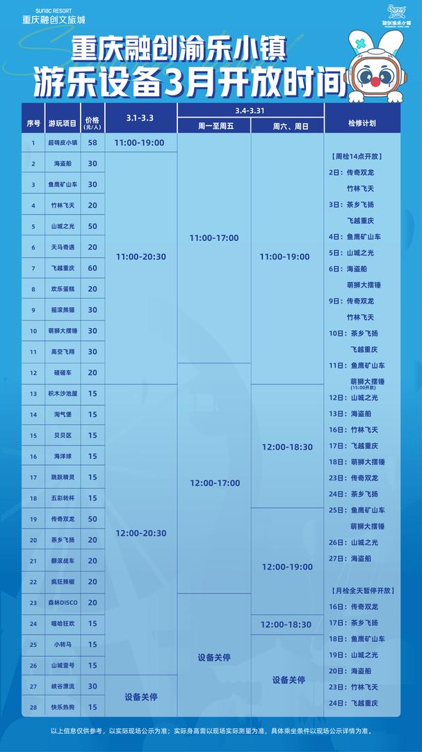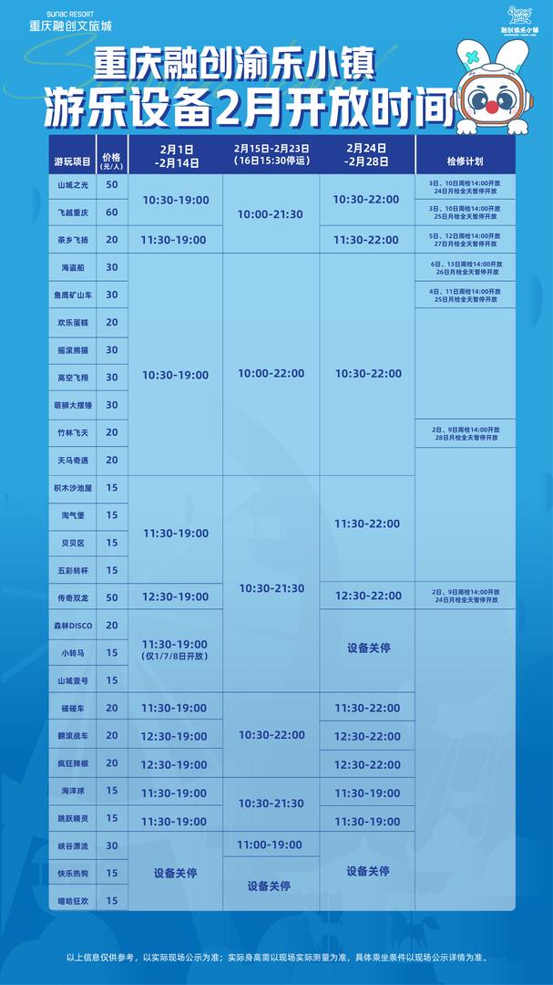 ②游乐设备1月开放时间,仅供参考: