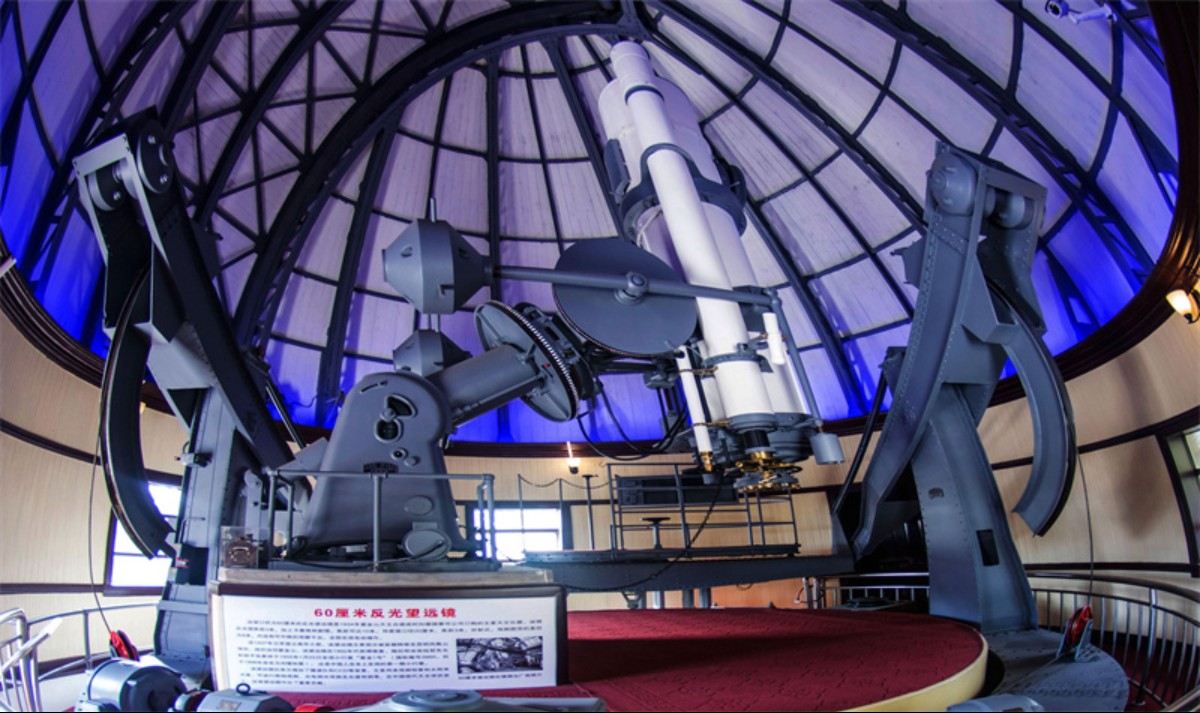 天文台本部,又称大台、大赤道仪室,为建台初期设计的中西合璧式建筑,圆顶具有鲜明的西方特色,大门则为牌坊式,上覆琉璃瓦,正中匾额书有“天文台”三字,为时任国民政府**林森题写,奠基于1933年12月22日冬至,安放600mm反射大赤道仪,是当时远东**的望远镜。