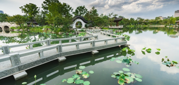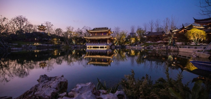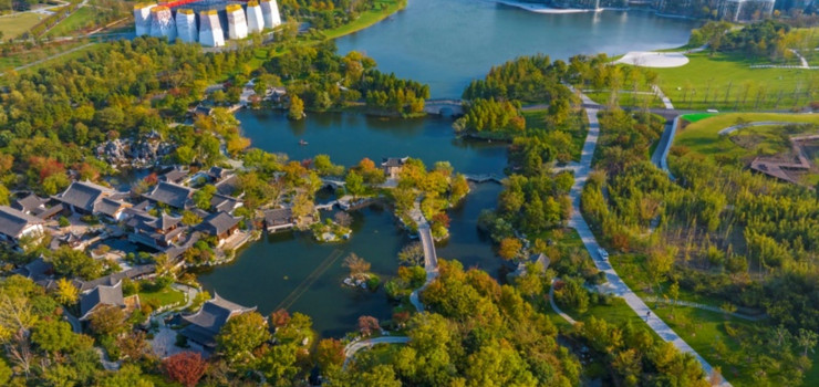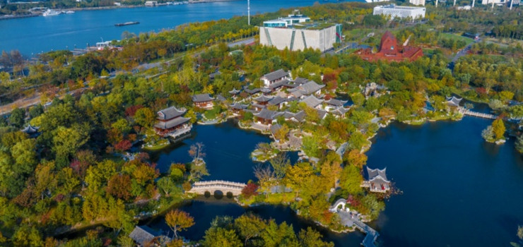 申园位于上海世博文化公园内,是一座新建的江南园林,坐落在世博文化公园的深处,通过几座石桥与公园相连。申园内亭台楼阁、池塘假山等各种江南园林元素一应俱全,虽然采用了现代材料,但古典的建筑样式依然美轮美奂。