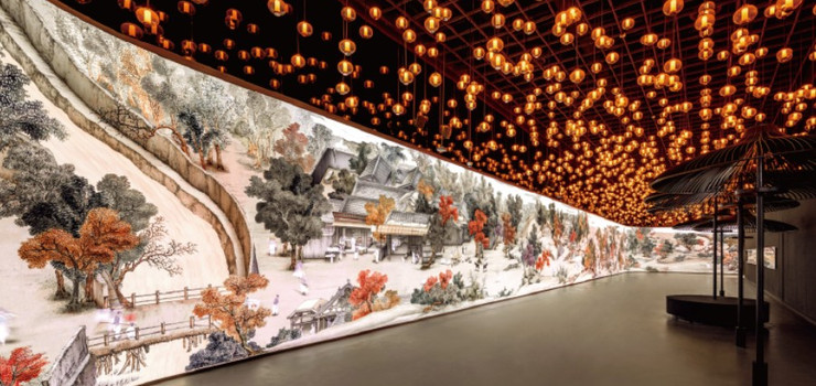 在110米长、3.6米高的超高清LED屏幕构成的展览空间中,传世古画《金陵图》被放大百倍,成为“活”起来的数字长卷。