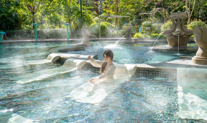 【森林温泉区】:拥有室内室外总共48个具有网红特色及功能的温泉泡池包括空中鸟巢温泉、缤纷药浴温泉、动感理疗温泉等温泉泡池,另设有温泉 SPA、石板浴、游泳池、桑拿房等区域。玩累了可以在此处泡泡温泉舒缓身心。