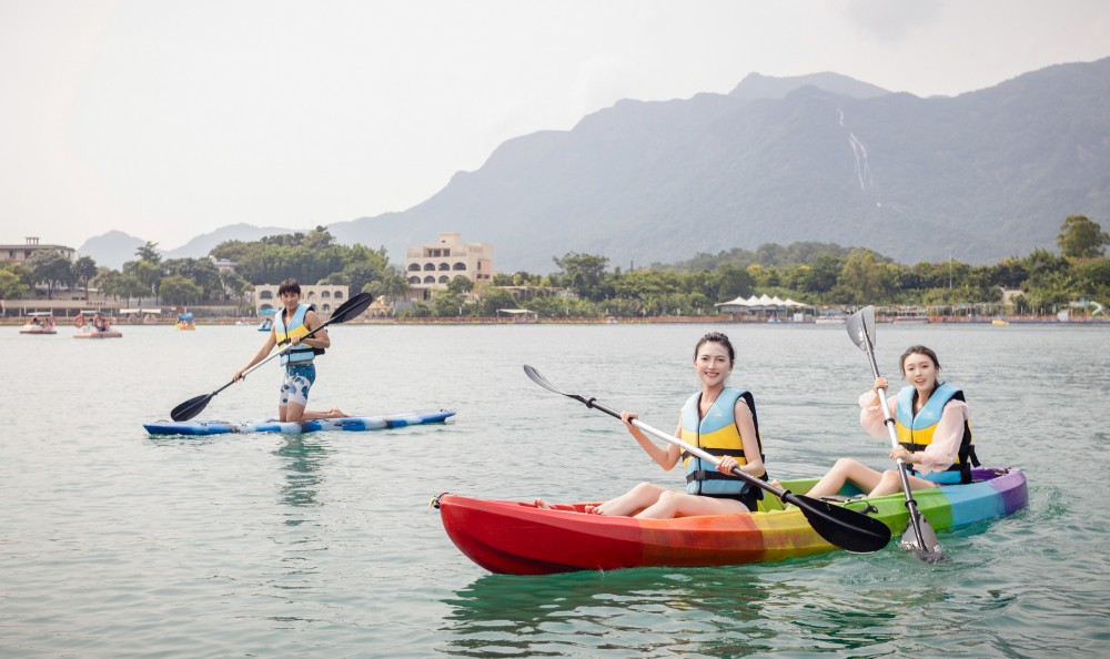 【天阳湖区】:约13万㎡的天然矿物湖,湖中设有游船、碰碰船、亲子皮划艇等精彩的水上休闲运动项目,让您体验多样户外运动。湖中央还设有水上舞台,在游湖休息的间隙,为你提供一场震撼的视听盛宴。