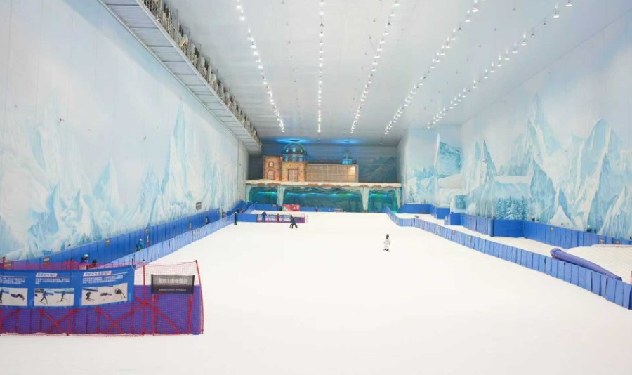 8130㎡的国际标准雪道,是初上雪游客体验专业滑雪的核心区域,以瑞士雪山区为场景原型,设有初中级道各1条和新手平地练习区,同时设有公园道具和进阶场地,满足进阶雪友炫技和竞赛需求。