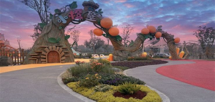 中国橘乡产品业态丰富,满足游客吃住行游购娱需求,打造成都近郊一 日游产品。其中休闲娱乐类:智慧农业展示、三友小筑 (啤酒/咖啡/茶)、亲子名宿、文创商业区、风雨广场、展示中心;亲子研学:橘农学院、 橘香书院、小小橙堡、咩咩农场、橘子工厂、农夫卖场稻田观赏区 (田园小火车);网红打卡类:水上集市、梯田灯光秀、粉红色沙滩、春见餐厅。景区动线设置合理项目游玩时间约一天,为方便游客,园区结合重要景观节点及道路设置5个观光车换乘点;一个电瓶车租赁站。交通组织合理布置,主要观光路线呈环状串联观光车转换点及重要景观节点,步行动线保证每个节点的可达性。此外景区致力于打造“浅丘特色、果园禀赋,望山亲水、融合共享”的乡村振兴综合体,聚力建设成全国性柑橘展示橱窗、现代化品质城市绿心、高品质市民游憩乐园。其布局休闲观光、文旅体验、农牧科普、住宿休憩四大板块,建设乡见、乡逢、乡嬉、乡望等景观组团,将大地景观、产业生态和乡村形态深度结合,有机串联亲子民宿、“橙”堡乐园、油菜花海、智慧橘园等多元消费场景。