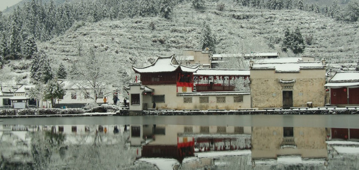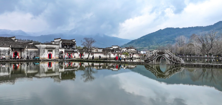 无边细雨湿春泥,隔雾时闻小鸟啼;杨柳含颦桃带笑,一边吟过画桥西。垂柳依依的南湖边,李慕白牵马从石拱桥上缓缓走过;玉娇龙持剑飞身掠去,在宛如镜面的月沼上划出一道波痕……这里是电影《卧虎藏龙》的拍摄地,这里是绘画人群的写生胜地,这里是中国画里的乡村,这里是——宏村。