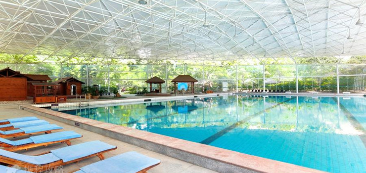 在室内的恒温泳池不仅可享受一年四季如春的亲水体验,更有温泉水特殊的矿物质元素的养生功能,在游泳的同时既美容肌肤又健康养生,一举两得。