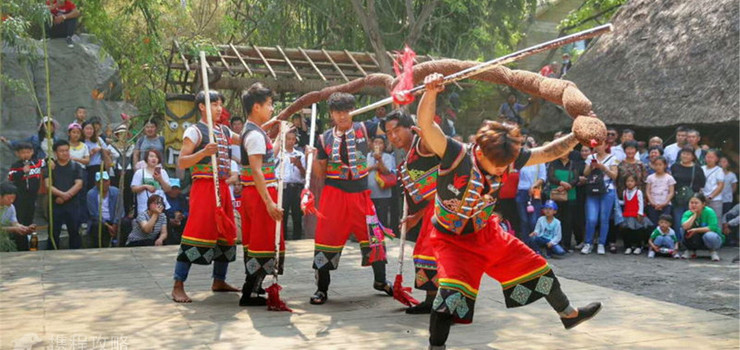 民族风情区还有精彩的上刀山下火海,摩托车飞车,神鞭、飞斧等民间绝技表演。
