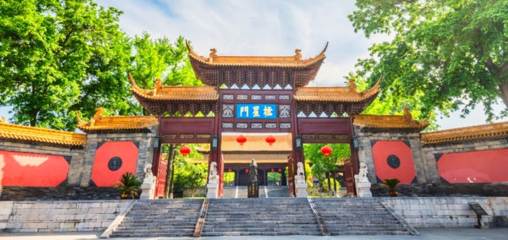 走过广场的畔池,迎面是棂星门。棂星门是木结构牌坊,相传为宋代理学家朱熹手迹。用“棂星”来命名文庙的正门,寓意这里是读书人进出的门第,也象征着孔子思想影响了天下读书人。大门两侧八字墙上有砖雕“团龙”两对,刻工精湛,堪称为清代雕刻艺术的代表作。