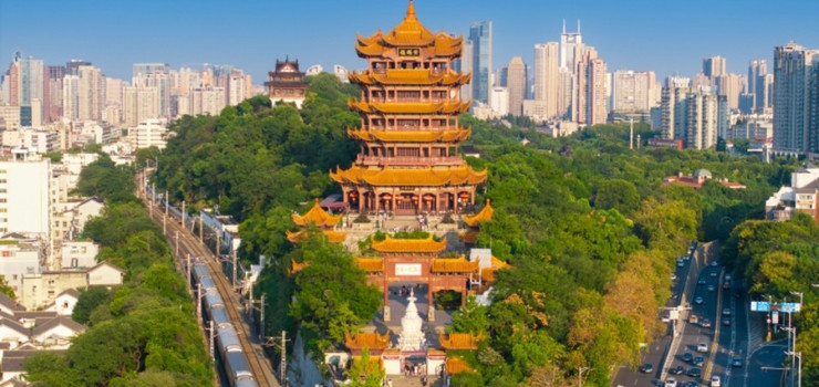 黄鹤楼现仍是行旅观赏之地,为了凭吊古人,也为了见识黄鹤楼本身的气势雄伟。黄鹤楼主楼共五层,层层飞檐,60个翘角凌空舒展,就像黄鹤腾飞一般。