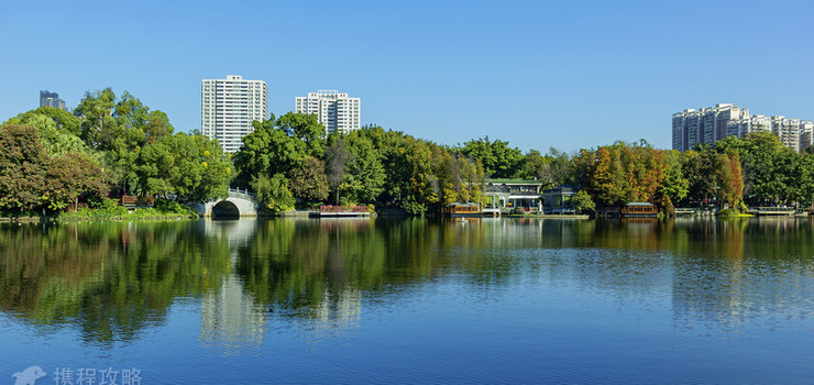 荔湾湖公园位旧址为荔枝湾,是广州城历史悠久的水乡名胜。明朝“荔湾渔唱”列为羊城八景之一。荔湾湖公园由小翠湖、玉翠湖、如意湖、五秀湖组成,八亭、八桥、四廊、三厅、一轩、一阁,散落在碧波绿树丛中,颇具园林建筑特色。荔湾湖公园离上下九不远,属于闹中取静,可以和上下九、西关大屋一起游览。