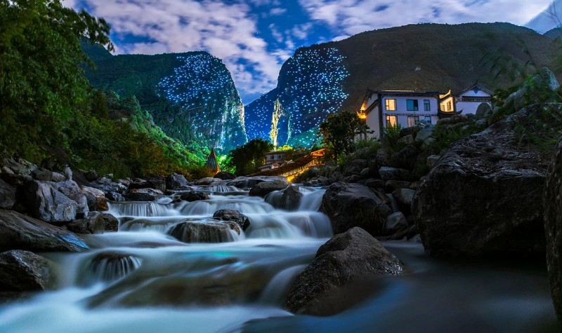 七叠水瀑布 飞流三千尺、银河落九天