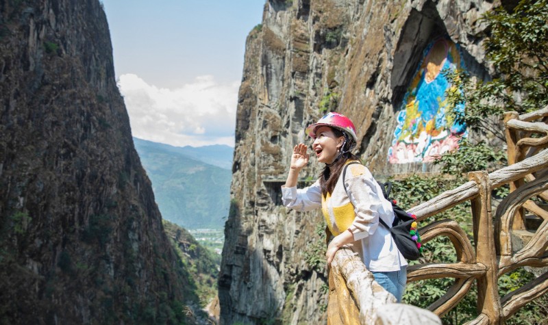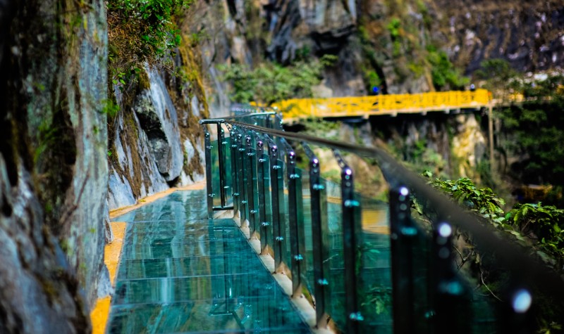 到石门关景区,体验玻璃栈道是绝不可错过的;在古石板羊肠小道的一端尽头,修建的绝壁玻璃栈道,悬挂于绝壁中间,行走于栈道之上,你可以清楚的看到,脚下就是万丈深渊,令人魂飞胆散;你有胆量去挑战它,征服它吗?