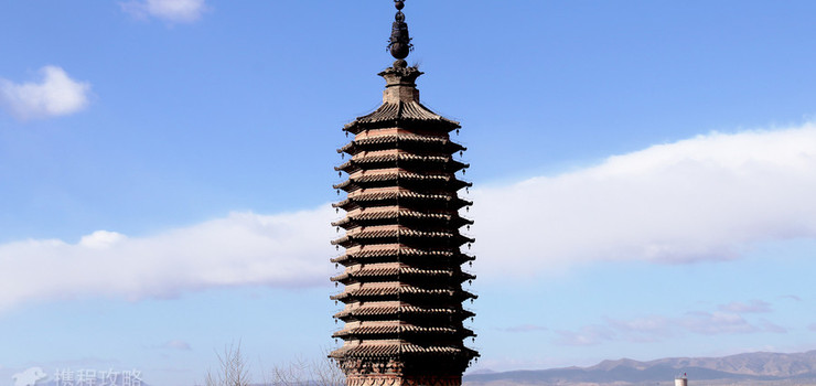 南安寺塔位于河北省张家口市蔚县城南西侧。是一座始建于北魏佛都盛行时期,重修于辽代的8面13级实心密檐砖塔,因坐落在南安寺,故名南安寺塔。此塔上下浑然一体,巍峨矗立,宛如一幢造型精美、典雅庄重的阁楼。该塔除底部东侧有一处1926年(民国十五年)军阀混战时留下的弹痕外,整个塔身,虽历经风雨和沧桑,但仍保存完整,不失为中国古代的重要建筑。该塔后来寺毁塔存,塔名仍沿旧称。塔高28米,塔基为石条叠砌面成,塔身置于莲花座之上。塔身层较高,各隅皆有塔柱,四周相间设拱形隔扇门与小窗,顶部雕盘龙,盘龙之上又有砖斗拱。二层以上变低。各层都悬有铁马,微风吹过,叮咚有声。塔顶雕饰莲花,承托刹身。南安寺塔是蔚县著名的文物景观之一,2001年被国务院公布为全国重点文物保护单位。