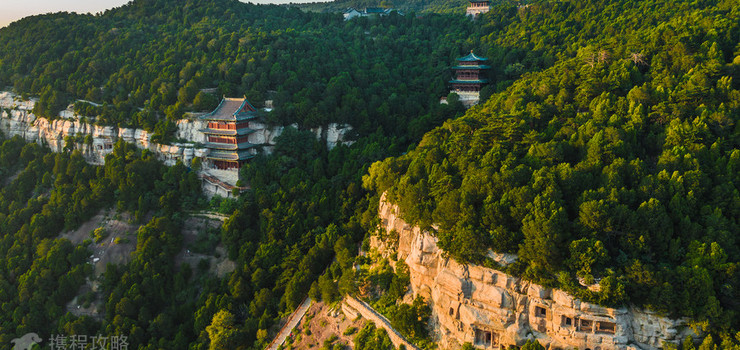 天龙山风光秀丽,四周山峦起伏,遍山松柏葱郁,山头龙王石洞泉水荡漾,山前溪涧清流潺潺。天龙山石窟分布在天龙山东西两峰的悬崖腰部,有东魏,北齐、隋、唐开凿的24个洞窟,东峰八窟,西峰十三窟,山北3窟。共存石窟造像1500余尊,浮雕、藻井、画像1144幅。
