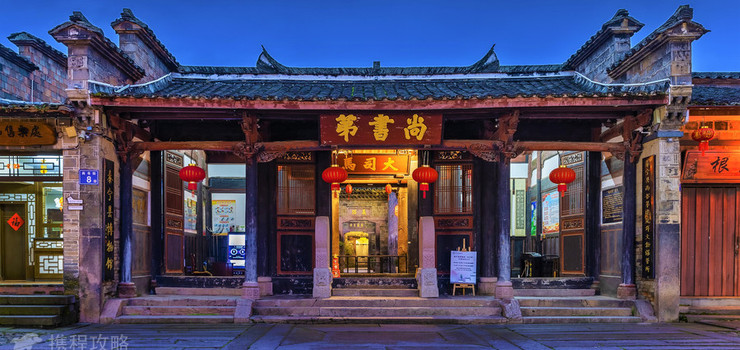 尚书第福建泰宁明代兵部尚书兼太子太师李春烨的住宅。120多间房子。特点是大气,建成至今毫无损失,是一座典型的泰宁传统“三厅九栋”形式排列的古建筑群。主体5栋,栋与栋以封火墙相隔,廊门相通,既独立又相连,它那巧妙的木结构精美的砖刻石雕斗拱雀替花舌等装饰,富有珍贵的艺术和科学价值。