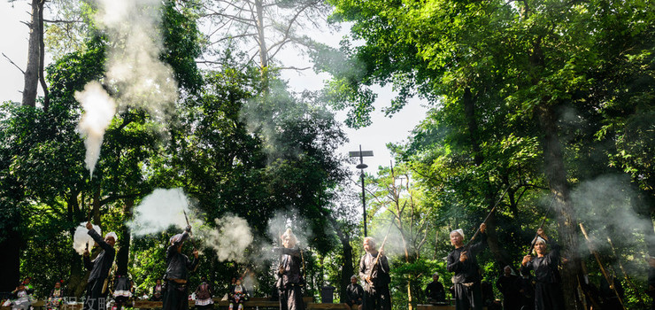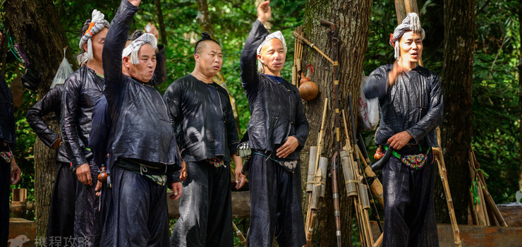 在岜沙寨东方坡茂密的树林里,在杉树、木荷、香樟、枫树等参天古树之中有一块约700平方米左右的平地,是岜沙人迎接客人、赛芦笙、祭祖的地方,环境优美,意境深远,古意盎然,生态自然。