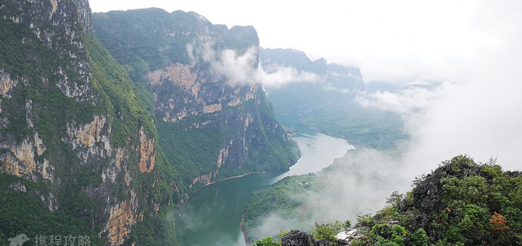从大桥上俯瞰深邃幽长的大峡谷,给人一种“天沟地缝”的感觉。近千米高,几个公里长的斧削绝壁犹如波澜壮阔、气势磅礴的巨幅长廊壁画。特别是在雾气朦胧、烟云缭绕的时候,给人更是一种仙境般的感觉。