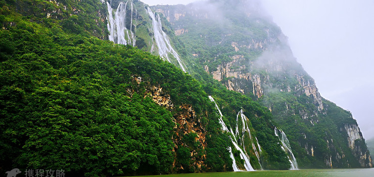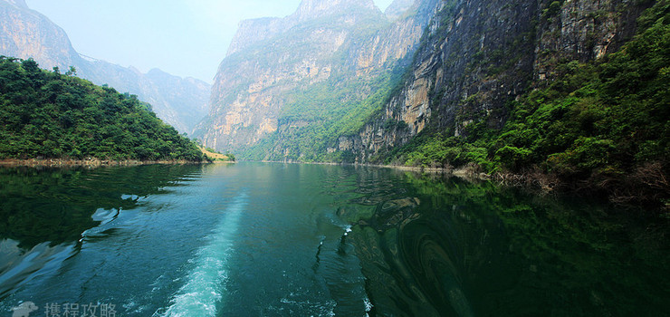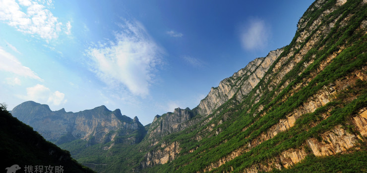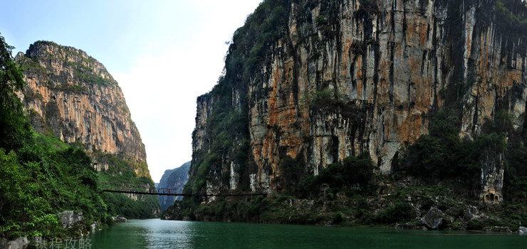 位于大峡谷下游,峡谷在此突向西坐90度的大拐弯,两岸绝壁高近千米,从上往下看,峭壁陡立对峙,惊心动魄,从下往上看,壁顶几乎合拢,仰见青天一线。