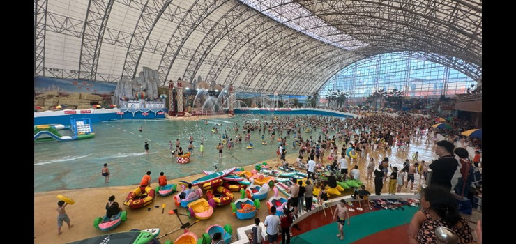 当主持人的提醒后,在“海啸”的轰鸣声放大时,你已经不再是你自己,你不能做什么,什么也做不了,也不要去想做什么,你能做的就是迷失你自己。起伏...升降...平移...起伏...升降...平移...时而被高抛到3米,又瞬间被拉入水中...水花飞溅、歌声激荡、尖叫四起,荷尔蒙在此时被拉高,惊喜、疯狂、恣意...等你稍作停息,轰鸣声又至...你一遍一遍,反复着不能自已。在“浪”和更“浪”之间,燃情着、恣意着自己。这就是我们--中国死海想给你的,冲浪的恣意。