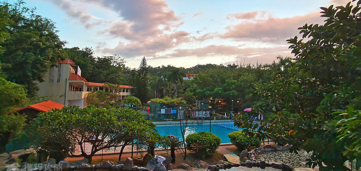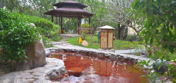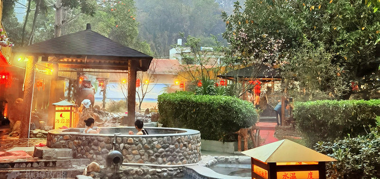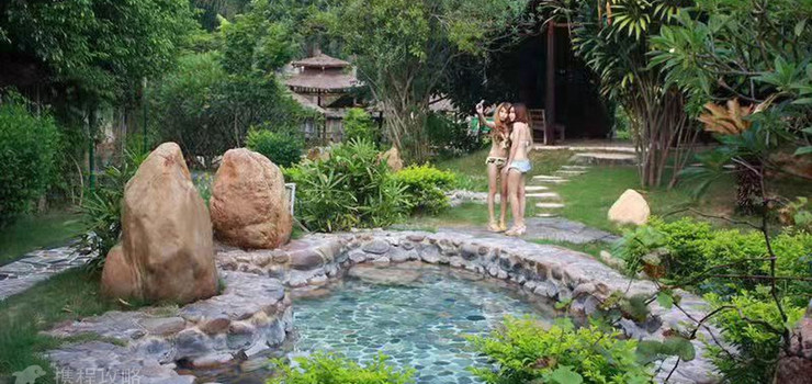 度假村四周群山起伏,层峦叠翠,风光秀丽,景色迷人,充满大自然的野趣。 该度假村的温泉水温最高达80度以上,可将鸡蛋烫熟,所以在诸多泉池里有个汤鸡蛋小池,让你可以边泡温泉边剥烫熟的鸡蛋来吃。