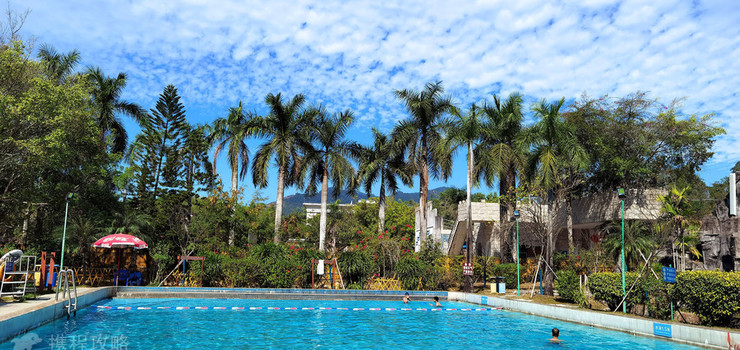 度假村里形态各异的泳池喷泉、亭台水谢、奇水异花、园林山水,构成了一座全方位、多功能、亦动亦静、如诗如画的大型度假村。