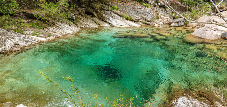 翡翠谷的石头都是干干净净的石头,没有泥沙,所以水流的冲刷形成一汪清潭,正是看起来是浅滩,实际上有几米深。温润的碧水,在崎岖的石头上前行,也变得激情起来。在与石头的撞击中,清澈的水变成纯白的浪花,如瀑如雾,另有一番美景。