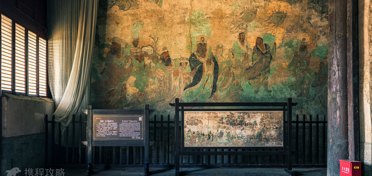 北岳庙不仅以其祭祀北岳之所而彰显着不同凡响的文化地位,更是一座内涵丰厚的文化艺术之殿堂。“德宁之殿”内的壁画让人叹为观止。壁画画面完整,布局疏密得当,绘画技艺精湛。所绘人物高者可达3.3米,线条流畅自如,着笔工整,色彩浓淡适度,旗幡衣带,随风飘佛,形象优美,神态各异,栩栩如生。