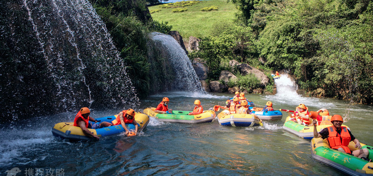 f.漂流前请准备多一套干净衣服和拖鞋;漂流前请务必戴好头盔,穿好救生衣