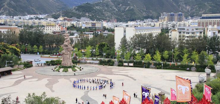 羌民族举行迎宾、集会、庆典的大型文化广场,又称冉駹广场。茂县地区古为古羌冉駹王居地,长期生着“冉”部落和“駹”部落,即分别以牛头和羊头为图腾的部落,是先秦时期当地较大的两个羌族部落。汉武帝期,为应对外来强大的军事压力,两大部落开始组成部落联盟,由此合称“冉駹”。随着时代变迁,语音逐渐发生差异,古称“冉駹”逐渐转化为羌人自称,即“尔玛”。