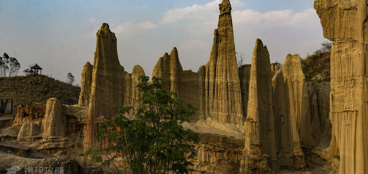 虎跳滩土林位于元谋县城西北32公里的物茂乡虎溪行政村,又称物茂土林,芝麻土林,总面积2.3平方公里。虎跳滩土林形状以城堡状、屏风状、帘状为主,高度一般10-15米,至高27米。从远处眺望虎跳滩土林,沟壑纵横,荒凉粗犷、犹如一座废弃的城堡。而近看则像一组组工程巨大的艺术群雕。