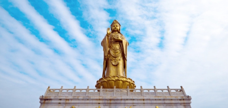 普陀山主供观音菩萨,是著名观音道场。观音菩萨在中国民间有着广泛影响。日僧慧锷请观音到普陀后,经历代名僧弘扬传法 和广大信士、工匠开发经营,观音道场香火日盛, 观音信仰习俗遍及大江南北,并且走出国门,传到海外,特别是旅居海外的华侨在居住国供奉观音圣像,念诵观音佛号,影响着居住国人民对观音之信仰,一些岛国民众更把观音奉 为祈求航海平安的保护神。