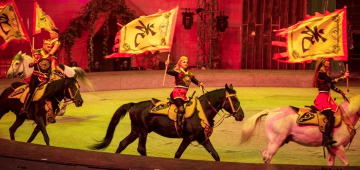 新马戏《大闹天宫》以驰名中外的四大名著之一《西游记》美猴王孙悟空为故事蓝本,全戏通过《大圣归来》、《龙宫夺宝》、《大闹天宫》、《西天取经》四个篇章,呈现出石猴惊天初问世、东海龙宫勇夺金箍棒、蟠桃会大闹天宫、师徒西天取经的故事。新马戏《大闹天宫》,集魔幻、惊险、刺激、欢乐、趣味于一体,为传统IP赋予全新的表演形式,让《大闹天宫》更加惊艳更加具有传奇色彩,同时填补了中国首部以孙悟空为故事主题的马戏剧目的空白。