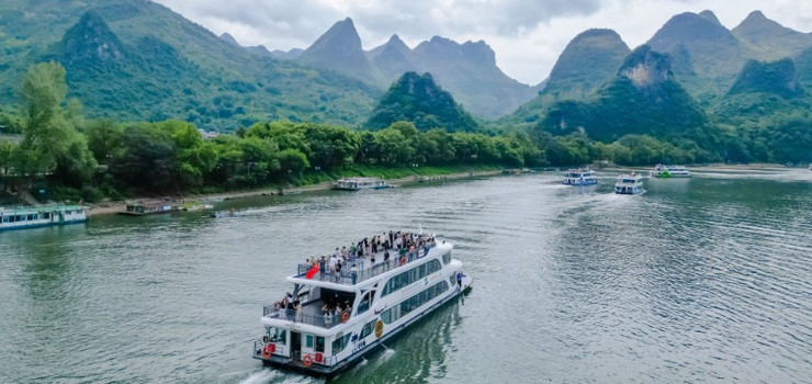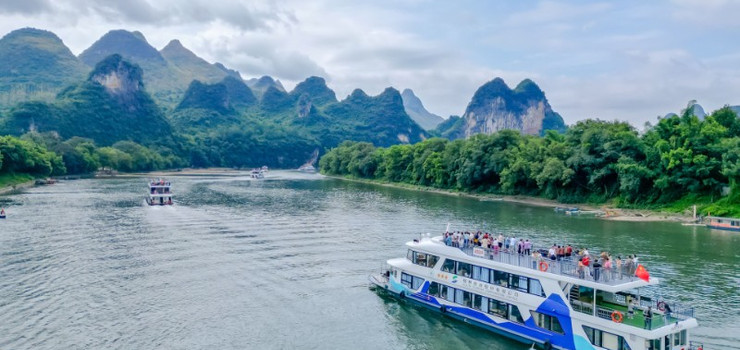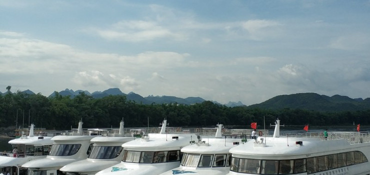 2、乘坐漓江游船的优点:可直达阳朔县城(龙头山码头就在西街内)。且大船空间比较大,可以很自由的活动。进可在二层三层的甲板自由拍照,退可在空调船舱内吃零食水果嗑瓜子聊天。人数也不受限制,一个人也可以,三五七八人都可以在一起。 缺点:游览时间较长,全程4个多小时,且价格较排筏游更贵。