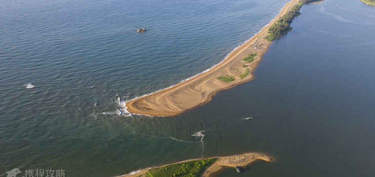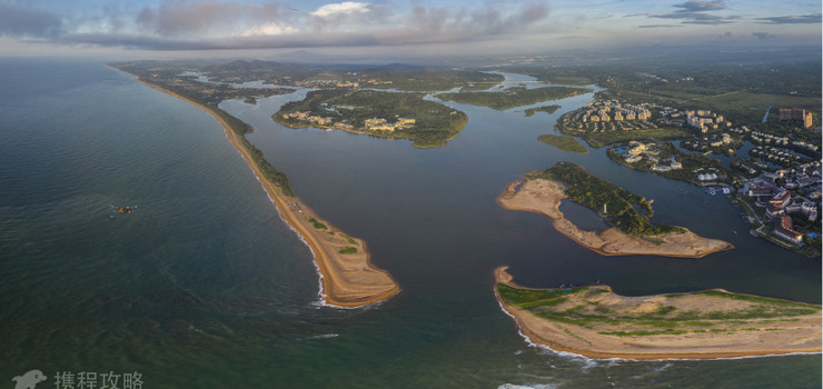 玉带滩是琼海市博鳌镇一处沙滩半岛,这里有着河、海交汇处的独特景观。站在狭长的玉带滩上,一侧是波涛汹涌的南海,一侧是风平浪静的三江交汇处(万泉河、龙滚河和九龙江),景色非常奇特。去往玉带滩必须坐游船过去,乘船的码头就在博鳌亚洲论坛永久会址的边上,一般可以购买博鳌亚洲论坛永久会址的景点套票,然后连着玉带滩一起游玩。南海的浪有点大,所以下水游泳会比较危险,一般游客来此也就是在沙滩上玩耍会,欣赏这三江入海的景色。