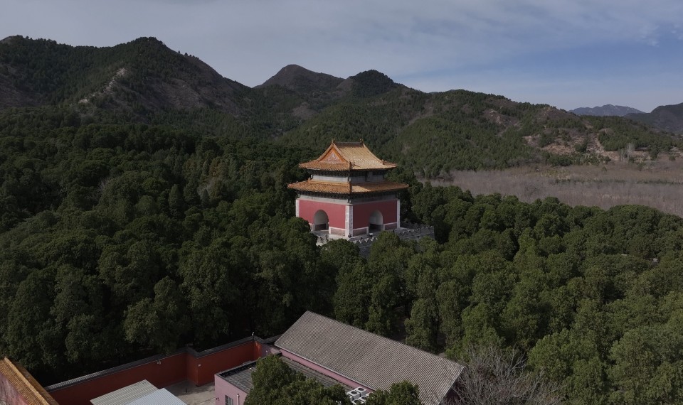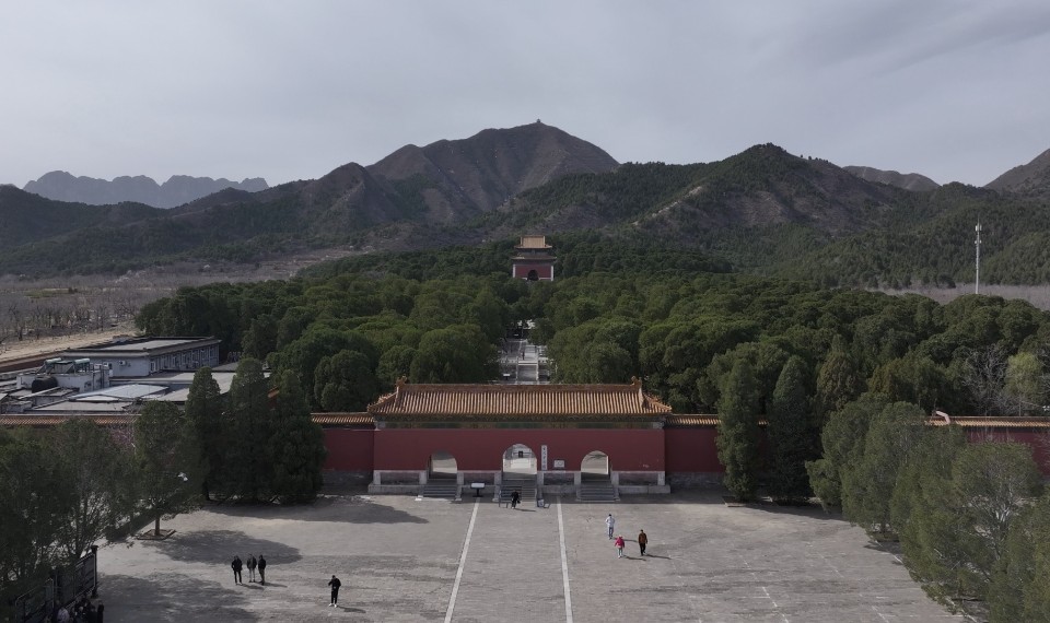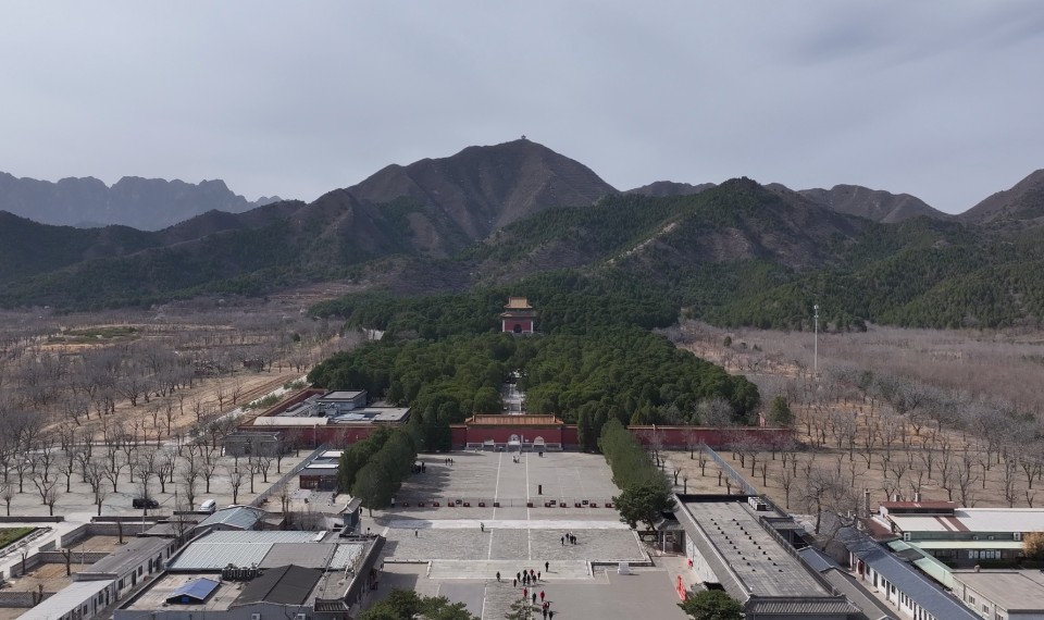 明定陵地面建筑的总布局,呈前方后圆形,含有中国古代哲学观念“天圆地方”的象征意义。定陵早在万历帝生前就开始营建,万历十二年(公元1584年)开工,历时6年方完成,耗银八百万两。陵墓建成时皇帝只有28岁,直到1620年才正式启用,该陵墓整整闲置达30年之久。定陵成为十三陵中最大的三座陵园之一。它的地面建筑共占18万平方米,前有宽阔院落三进,后有高大宝城一座。陵正门前方是三卒汉白玉石桥。过了桥是高大的碑亭。亭周围有祠祭署、宰牲亭、定陵监等建筑物300多间。再往后就是陵园最外面的围墙-外罗城(围墙外的围墙)。