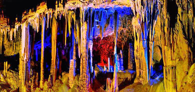一个呈立体空间结构、水陆兼备、岩洞内高低错落有致、空气流通,是目前已开发的大桂林溶洞中钟乳石品种齐全的岩洞之一。游览途中大小不同的石花水潭错落有致,潭水纯净清澈,形成如梦似幻的水境倒影,独特的水下结晶形 成的“福”、“寿”文字和硕大的灵芝让人惊艳。稍坐停留,听一首优美纯朴的山歌,人与自然的结合,让原本浮动的心得以平静,随后带着愉悦的心情继续前行,一同见证地壳运动走过的 足迹。