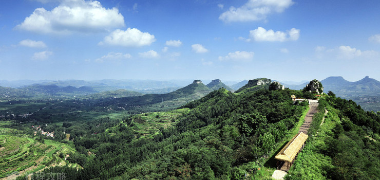 “崮上草原”以其宛若塞外草原的独特风光,演绎着“天苍苍、野茫茫”的异域美景。群崮环绕、视野开阔。远眺群崮,层峦叠嶂、崮岳如黛,“一览众山小”,是岱崮地貌景区较佳观崮点之一。