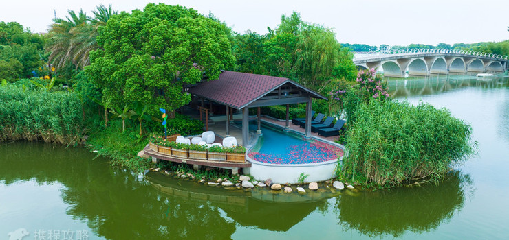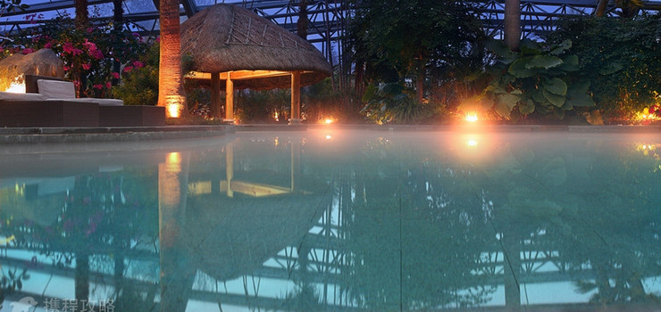 热带雨林环绕下,26个特色迥异的温泉泡池四处散布,包含五行养生区、有机花草区、美容养颜区和亲亲鱼疗区等区域。绿树掩映下,温泉充满着负离子,空气中也弥漫着植物的芳香,潺潺流水声、轻缓的音乐、泉水在肌肤上流淌,触动着你感官的每一根神经。