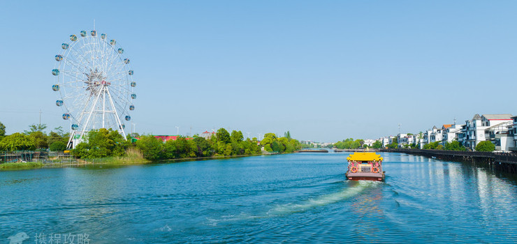 摩天轮,远看像五彩缤纷的巨大车轮,9分钟旋转一周,座舱悬挂在天轮边缘。带乘客徐徐上升至50米高空,饱览大地美景,鸟瞰乐园全貌,五颜六色的彩灯由中心向外辐射,夜幕里如星星闪耀,流光溢彩,灿烂夺目。