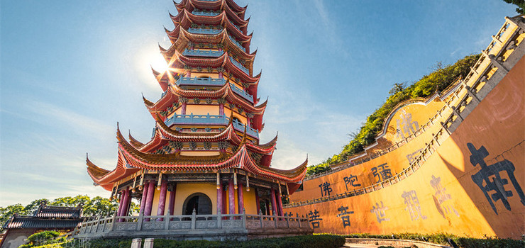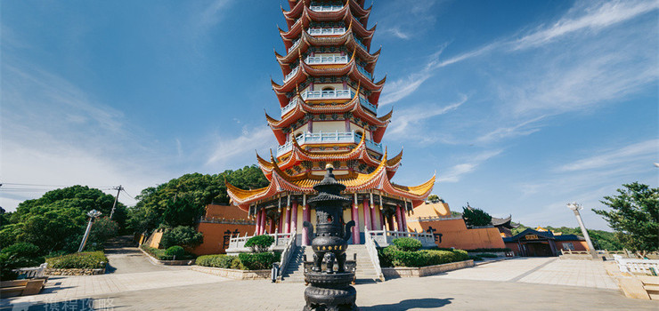 磨心山位于岱山岛东南部,距县城高亭镇2.2千米,三面环山,一面临海。全山占地约6万平方千米,其中月平岗为岱山本岛至高处,海拔257.1米。景区以佛家文化为主体,徐福求仙为背景,海上千岛相映衬。山上遇有云雾,变幻莫测,碧海绿洲,时隐时现,恍入蓬莱仙境,主要景点由慈云极乐寺、白峰积雪、华藏世界、茶园晓雾、现龙井、玉佛宝塔、碧波亭、望海亭、徐福广场等景点组成,是浙江省仅有的几处自然天象类5级资源,是观赏“海上千岛”的最佳地。依山而建的慈云极乐寺规模宏大,被誉为海上布达拉宫。
