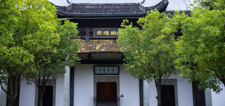 “佑陶灵祠”供奉的是窑神童宾,童宾字定新,又名广利,景德镇里村人,烧窑工。据传万历二十七年(1599),御窑厂奉旨督造一批青花大龙缸,结果屡烧不成,一贯蛮横暴虐的督陶官太监潘相急了,动不动就体罚工匠,童宾一怒之下爬上烟囱,投火自尽,以死来谏阻龙缸的烧造,当时童宾只有32岁,童宾的死引发了民变,朝廷为息事宁人,在御窑厂立祠**他,名号“风火仙师”。