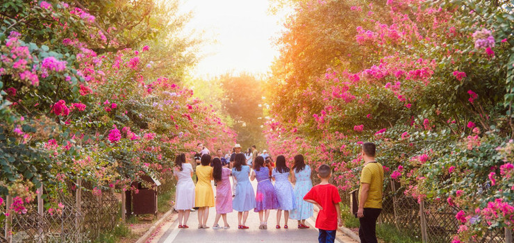 一场雨后,紫红的紫薇花在路边铺满了花瓣,让赏花的路上,更添了一份落红不是无情物的的美感。经过雨水的洗礼后,路边红的花儿似乎更艳了,绿的树叶也更翠了,强烈而色彩对比,在空朦的雨色中,反而使画面更美了。